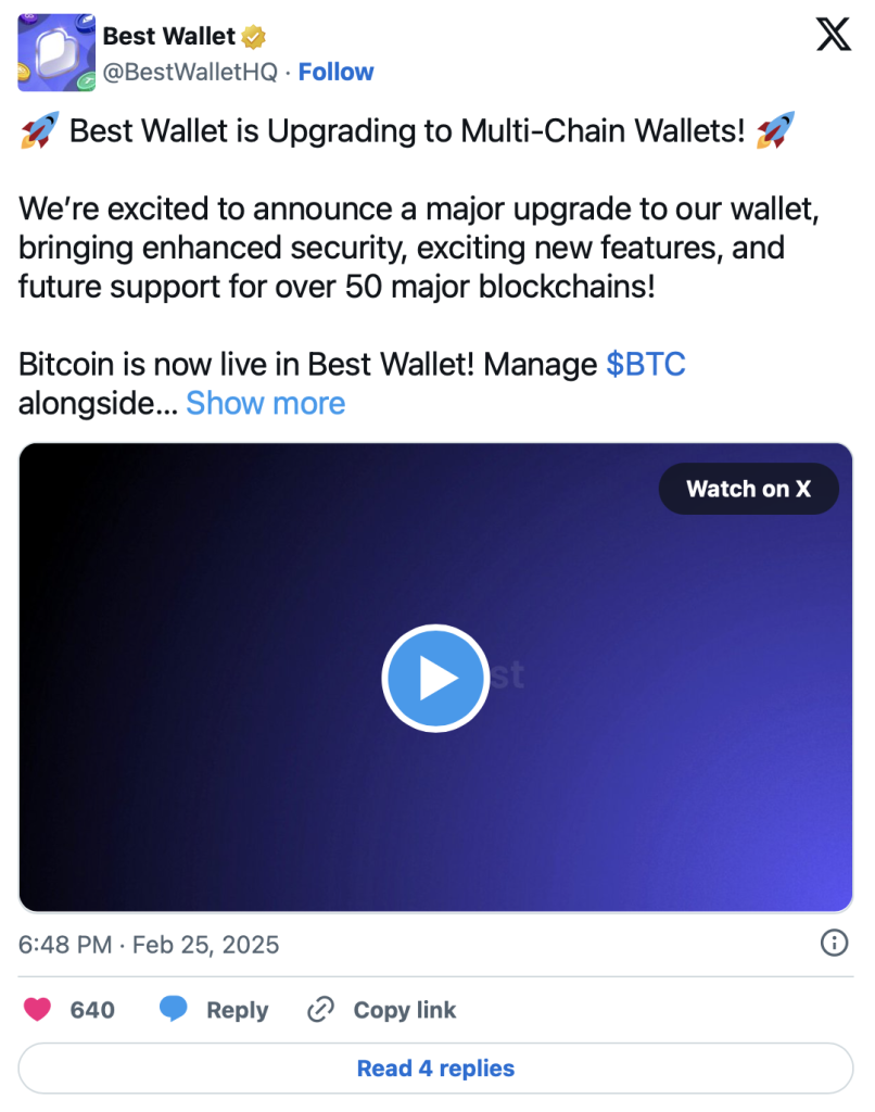 Best Wallet hat ein massives Upgrade veröffentlicht. Mit Version 2.5.1 wird nicht nur volle Bitcoin-Unterstützung integriert, sondern auch Multichain-Funktionalität für Ethereum, BNB Smart Chain und Polygon. Weitere Blockchains wie Solana und Tron folgen bald.