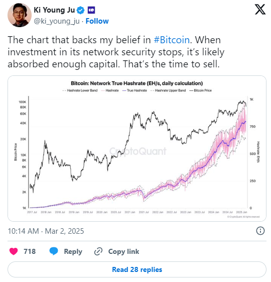 Laut Analyst Ki Young Ju sind derzeit über 4,8 Millionen Mining-Rigs aktiv, die einen Marktwert von 1,7 Billionen Dollar absichern. Besonders ist, dass diese Zahl selbst während der jüngsten Korrektur gestiegen ist – ein klares Zeichen, dass Miner langfristig planen und weiterhin an Bitcoin glauben.