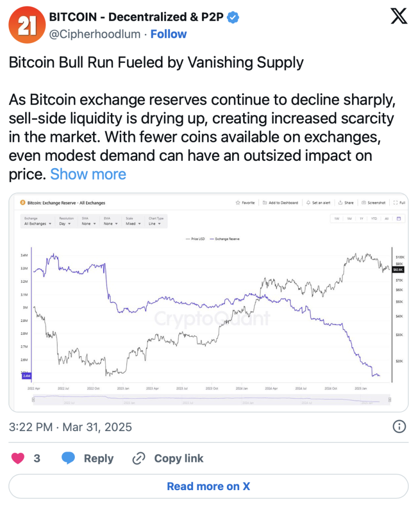Hintergrund ist die stärkere Anbindung an die traditionelle Finanzwelt, insbesondere durch die Einführung von Spot-ETFs. Institutionelle Investoren agieren verstärkt, was Bitcoin anfälliger für Zinspolitik, Inflationsdaten und geopolitische Entwicklungen macht. Adler sieht deshalb die Monate April und Mai als potenzielle Konsolidierungsphase – also als Übergangsperiode, bevor ein neuer Impuls den Markt antreiben könnte. Auch weitere Analysten erwarten, dass der Bitcoin-Kurs durch eine zunehmende Verknappung des Angebots weiter steigen dürfte.