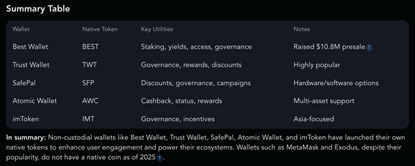 Messari mit Unterstützung von Copilot zeigt, dass die Konkurrenten wie MetaMask und Exodus trotz der Beliebtheit noch keinen eigenen Coin haben. Dies dürfte sich jedoch als kostspieliger Fehler für diese herausstellen, da Web3-Features von der Krypto-Community zunehmend als Selbstverständlichkeit betrachtet werden. Mit Best Wallet soll hingegen die Zukunft eingeleitet werden.