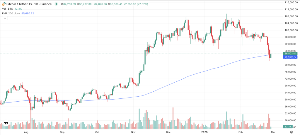 Die Bitcoin-Entwicklung im Jahr 2025 hat viele Investoren enttäuscht. Trotz Donald Trumps kryptofreundlicher Rhetorik im Wahlkampf und seiner Versprechen, die USA zum Zentrum der Krypto- und KI-Entwicklung zu machen, befindet sich der Bitcoin-Kurs seit seinem Allzeithoch am Tag von Trumps Amtseinführung in einem Abwärtstrend. Die kürzlich angekündigten Strafzölle gegen die EU haben zu weiteren Kursrückgängen geführt. Dennoch gibt es Anzeichen, dass die Korrektur bald enden könnte.