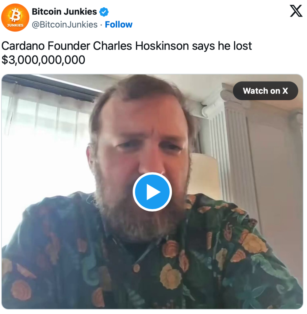 Hoskinson gesteht massive Buchverluste im Livestream