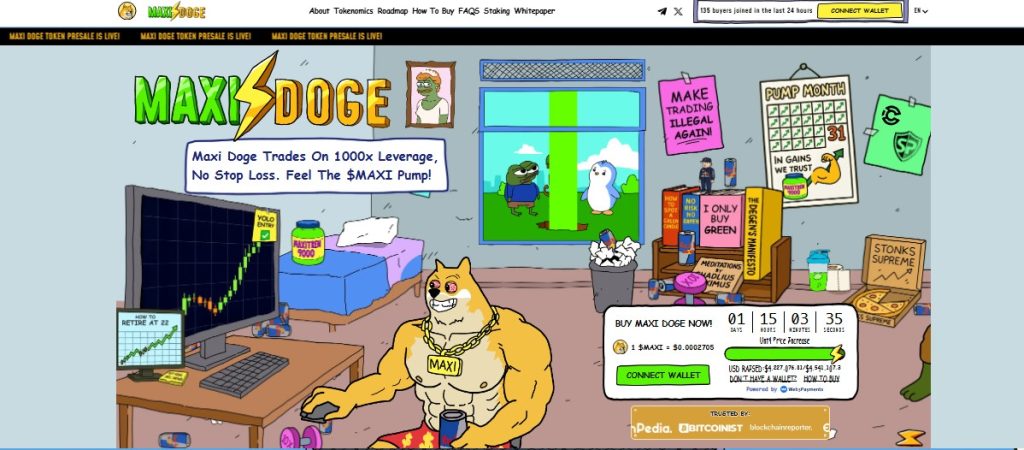 Parallel dazu versucht Maxi Doge, sich als alternatives Meme-Projekt mit klarerer Struktur und präziserem Tokenmodell zu positionieren. Durch den derzeit laufenden Presale, kombinierte Staking-Anreize und eine aktive Community präsentierte sich MAXI zuletzt mit deutlich sichtbarer Dynamik.