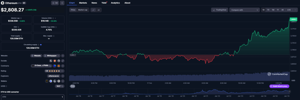 Während Solana unter Druck gerät, zeigt Ethereum eine positive Entwicklung. Mit einem Kurs von 2.800 Dollar liegt ETH zwar noch unter seinen Höchstständen, gewinnt aber wieder an Zuspruch bei Investoren