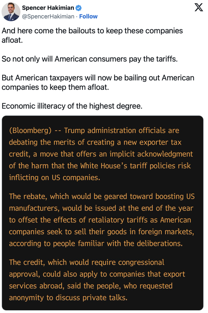Allerdings konnten für Entlastung sorgende Faktoren beobachtet werden: Das Weiße Haus hat laut Berichten über eine temporäre Pausierung der Zölle für einen Zeitraum von 90 Tagen nachgedacht (später als Fakenews bezeichnet), während das diskutierte Steuergutschrift-Programm für Exporteure und die Rückerstattung für US-Hersteller ebenfalls für Erleichterung sorgten. Zudem hat die Präsidentin der Europäischen Kommission, Ursula von der Leyen, 0% Zölle für Industriegüter vorgeschlagen und Gesprächsbereitschaft gezeigt.