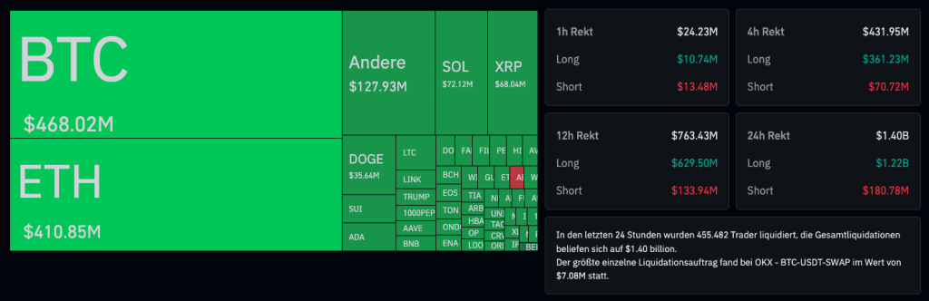 Kryptomarkt-Schock: 1,4 Milliarden Dollar an Liquidationen in nur 24 Stunden
