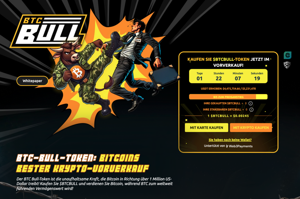 Auf diesem Weg kamen bereits über 4,4 Millionen Dollar an Investitionen von interessierten Anlegern zusammen. Das Projekt will mit einem innovativen Airdrop-Mechanismus punkten, der ausgelöst wird, wenn Bitcoin relevante Kursniveaus von 150.000 Dollar, 200.000 Dollar, 250.000 Dollar und so weiter erstmals überschreitet. Zusätzlich soll es einen Token-Burn-Mechanismus geben, der BTCBULL-Coins verbrennt, wenn Bitcoin die Kursniveaus von 125.000 Dollar, 150.000 Dollar und weitere Schwellen erreicht, was den Supply verringern und langfristig den Kurs stabilisieren soll.