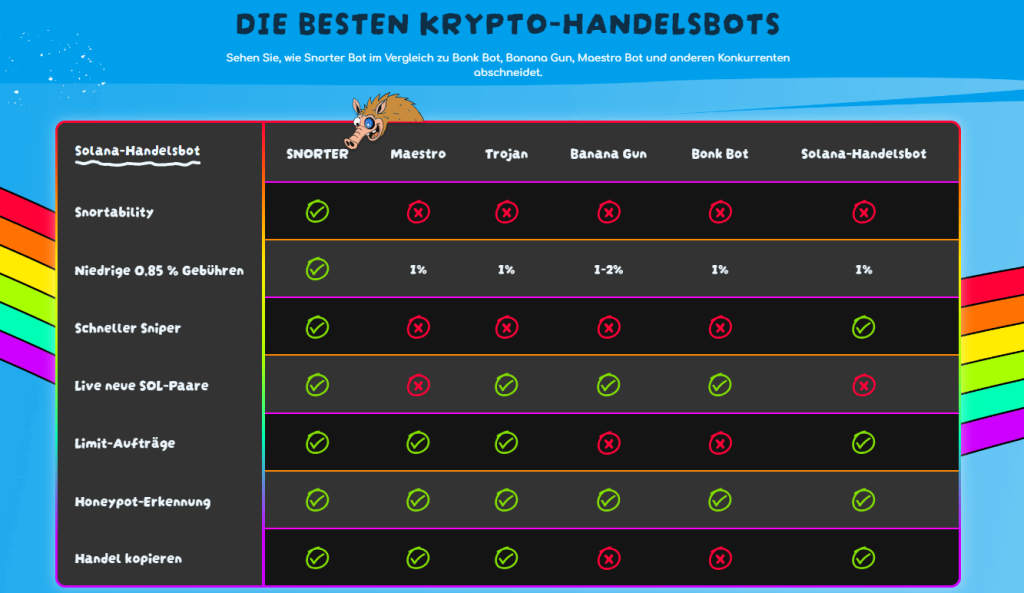 Das System bietet Features wie MEV-Schutz oder sub-sekundenschnelle Swaps, während Token-Halter von niedrigeren Gebühren profitieren. Mit einer geplanten Multichain-Strategie könnte das Projekt schon bald über Solana hinaus auch andere Ökosysteme abdecken. Investoren könnten damit doppelt profitieren: vom neuen Trading-Tool und möglicherweise auch vom nativen Token $SNORT – allerdings immer mit dem Risiko eines Memecoins verbunden.
