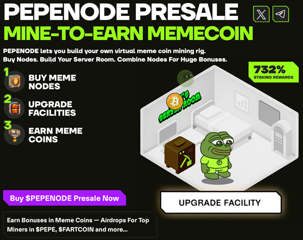 Während sich die Memetoken-Trader auf diesen Anstieg vorbereiten, ist mit PepeNode ein neuartiges Projekt erschienen, welches seinen Teilnehmern einen neuartigen Vorteil gewährt. Denn es handelt sich um das erste Memecoin-Mining-Projekt, in welchem man Memetoken passiv verdienen sowie somit doppelt profitieren kann.