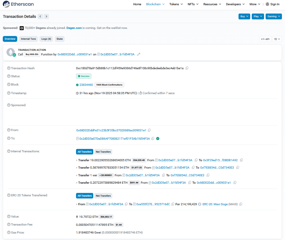 Quelle: https://etherscan.io/tx/0xc180d78a915d686b1c112df459e9366d746e8f108c90bdedeebde3ec4eb1be1a