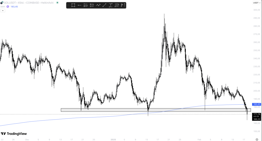 Die Kryptowährung Solana (SOL) verzeichnet aktuell einen deutlichen Rückgang von rund 10 Prozent innerhalb der letzten 24 Stunden und zeigt sich damit als schwächster Performer unter den Top 10 Kryptowährungen. Während der gesamte Markt eine rückläufige Tendenz aufweist, trifft es Solana besonders hart.