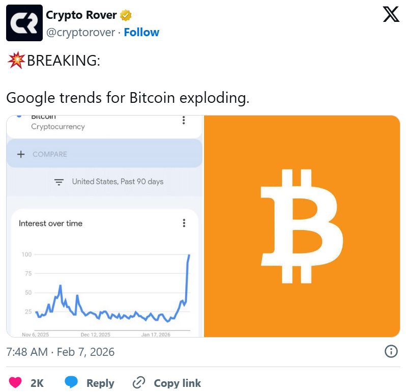 Analysten warnen jedoch davor, das gestiegene Suchinteresse isoliert zu betrachten. Während Bitcoin weiterhin um wichtige Unterstützungsniveaus kämpft, deutet die erhöhte Aufmerksamkeit vor allem darauf hin, dass privates Kapital wieder verstärkt an den Markt zurückkehrt.