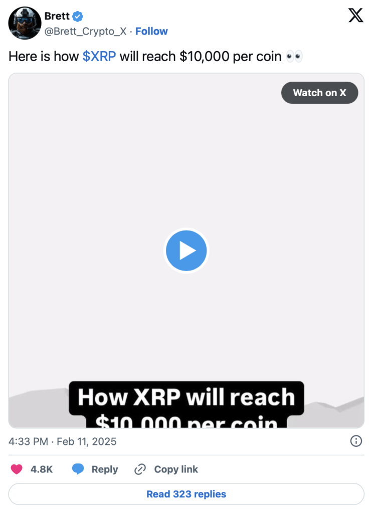 Die Verfechter der 10.000-USD-These argumentieren, dass XRP speziell für Hochgeschwindigkeitstransaktionen entwickelt wurde, die in 3 bis 5 Sekunden abgeschlossen werden können. Nach ihren Behauptungen könnte ein Token bis zu 50-mal pro Tag genutzt werden, wodurch für das Bewegen von 1 Billion USD lediglich 20 Milliarden USD notwendig wären.