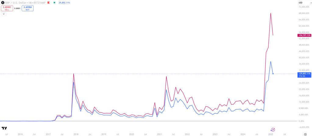 Eine genauere Analyse zeigt schnell die Schwachstellen dieser Argumentation. Bei der aktuellen Umlaufversorgung von 57,76 Milliarden XRP würde ein Kurs von 10.000 USD zu einer Marktkapitalisierung von 577,6 Billionen USD führen – das 185-fache des gesamten aktuellen Kryptomarktes von 3,13 Billionen USD.