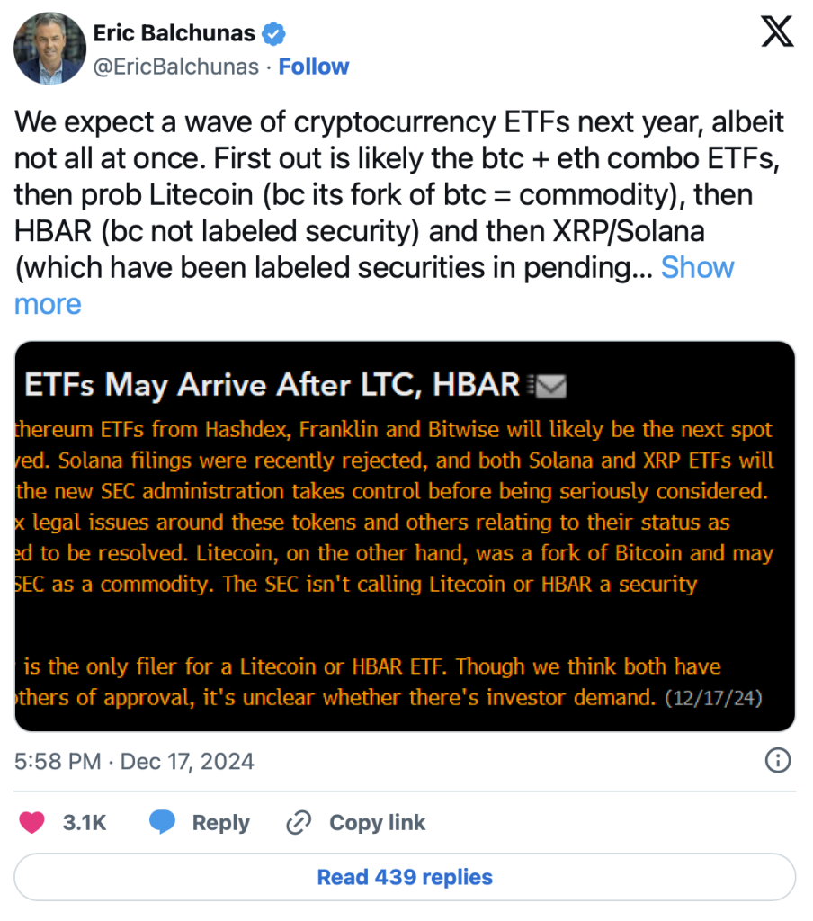 Bloomberg-ETF-Analyst Eric Balchunas sieht ebenfalls gute Aussichten, weist aber darauf hin, dass zunächst andere Kryptowährungen wie Litecoin an der Reihe sein könnten. Die SEC hat bereits Anträge von Bitwise, Grayscale und 21Shares für XRP-ETFs erhalten und muss bis Ende Oktober über diese entscheiden.