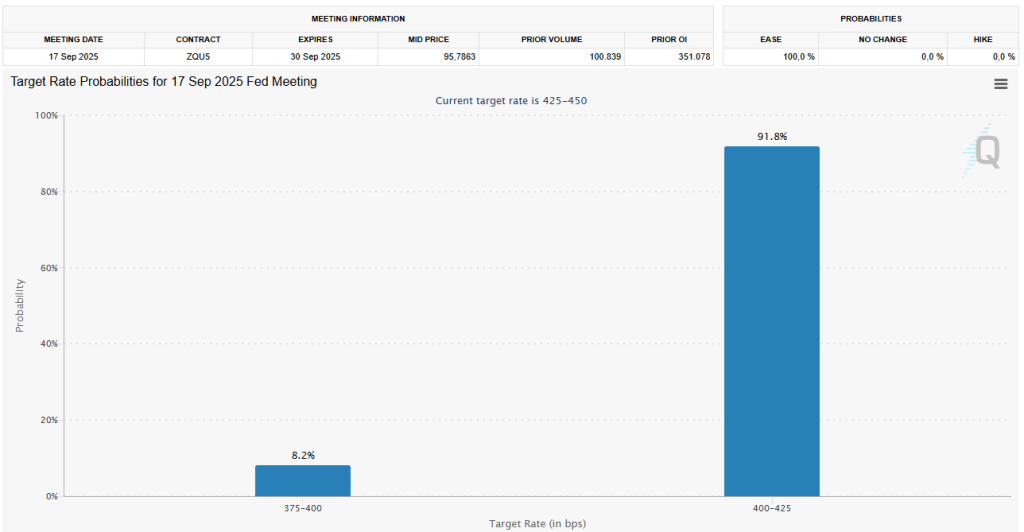 Für 17.9. stellt sich nur die Frage ob es 25 oder gar 50 bps nach unten geht, Quelle: https://www.cmegroup.com